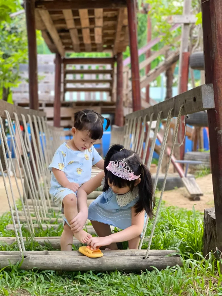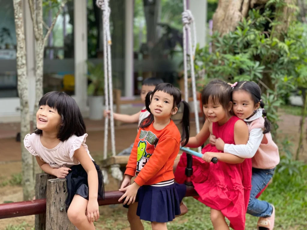 A third element aiding the development of community life is the inclusion of children of differing ages in each class. class, with one-third of his companions being new each year. This emphasis on age mix is based in large part on the help older children are found to give spontaneously to the younger ones, as well as the inspiration and example they provide.